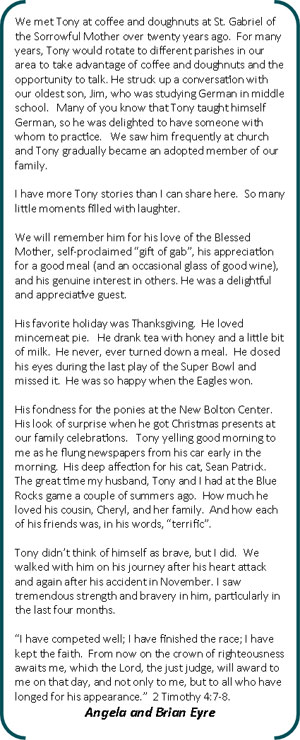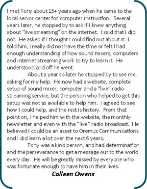 We would like to share these comments below from Oremus team members, family, friends and loved ones as to the impact Tony made: